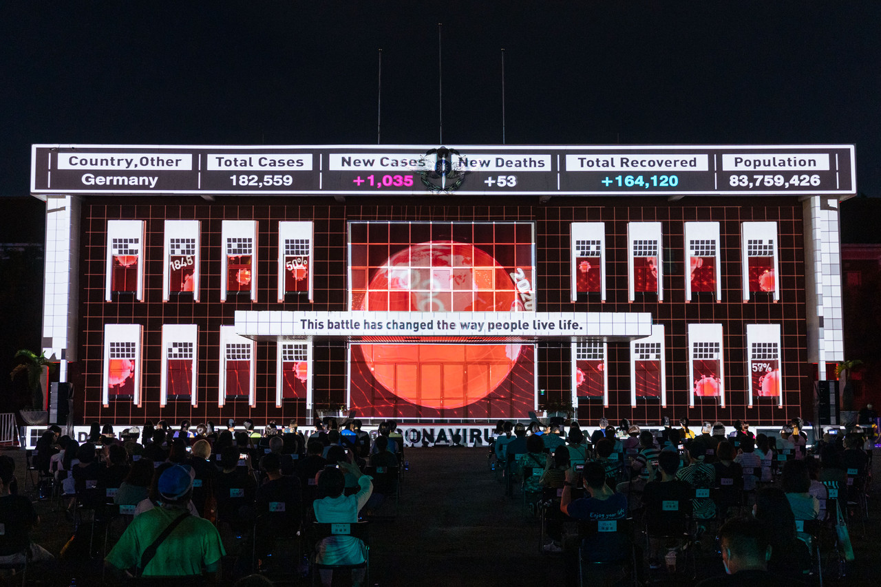 「空總台灣當代文化實驗場」拆除象徵軍事嚴肅、封閉的圍牆,舉行今年首場戶外活動,展開藝術圍牆計畫「限時動態公園」,31日為最後一場。光雕投影展演預計從晚間7點30分開始,每半小時一場,總計4場,將昔日的「戰情大樓」轉為「當代情報站」,還可以看見全球人口與疫情數據的動態資訊。