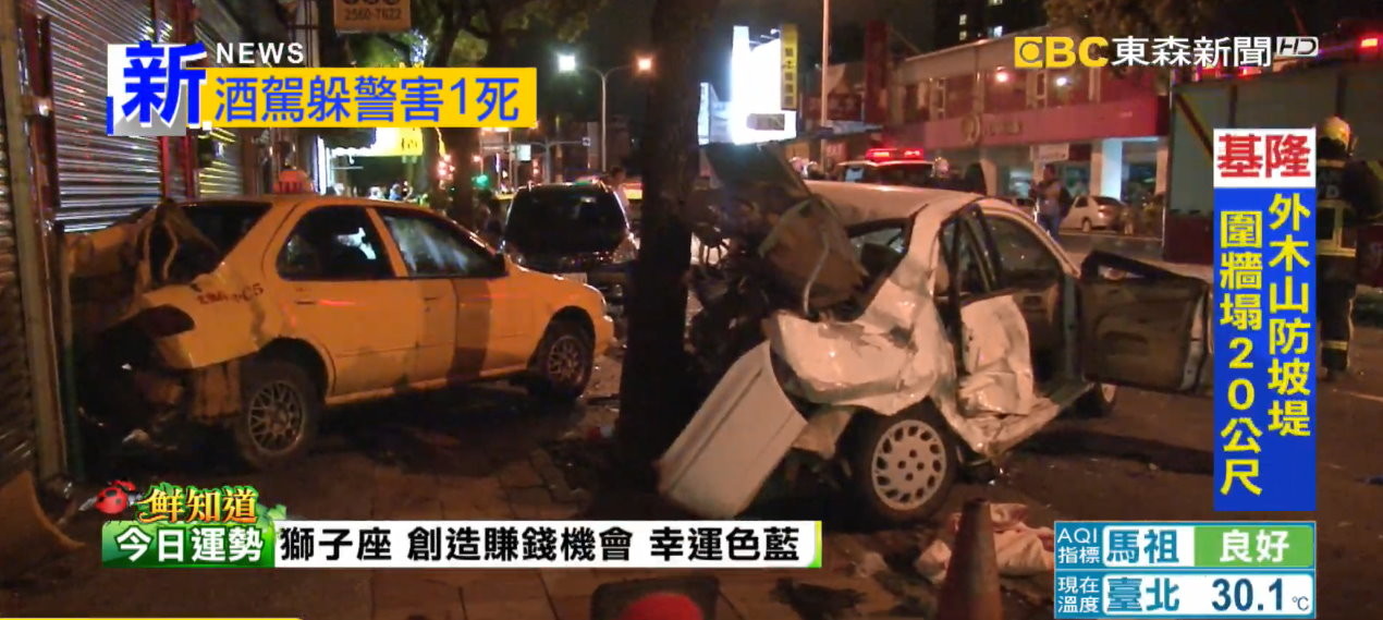 肇事的陳姓駕駛載兩名女子,遇上警方盤查,卻因心虛加速逃逸,先撞上白車,導致白車再撞路邊車輛,而陳車上的兩女則受到輕傷。陳男經酒測,酒測值超標,被上銬依公共危險罪嫌送辦。