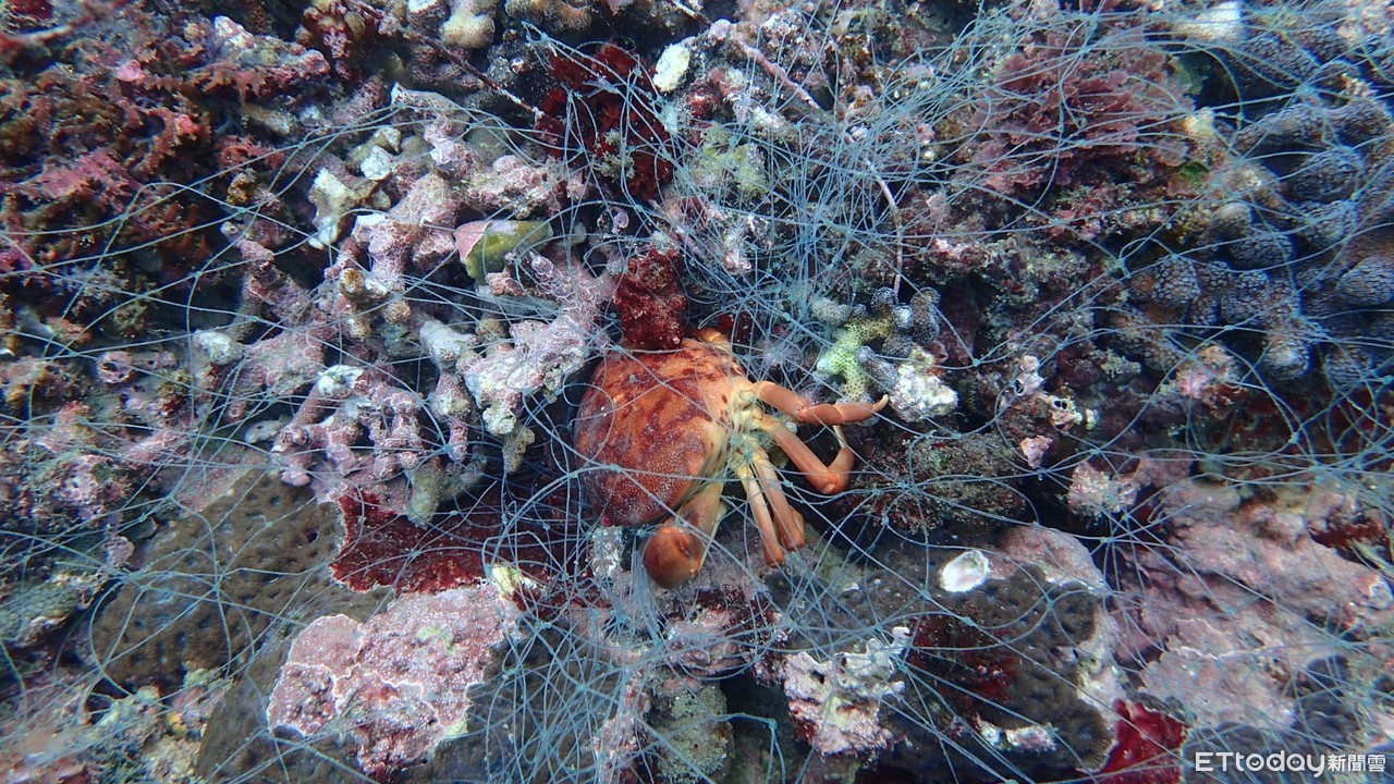 ▲許多海底生物被卡在漁網中奄奄一息。(圖/神豬教練授權提供)