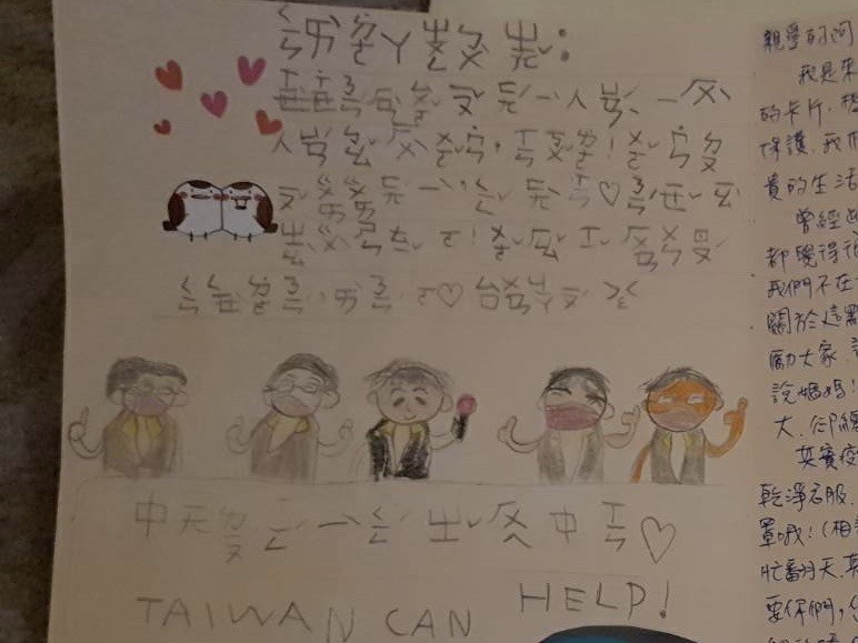 ▲女童手繪卡片,內容相當豐富。(圖/指揮中心提供)
