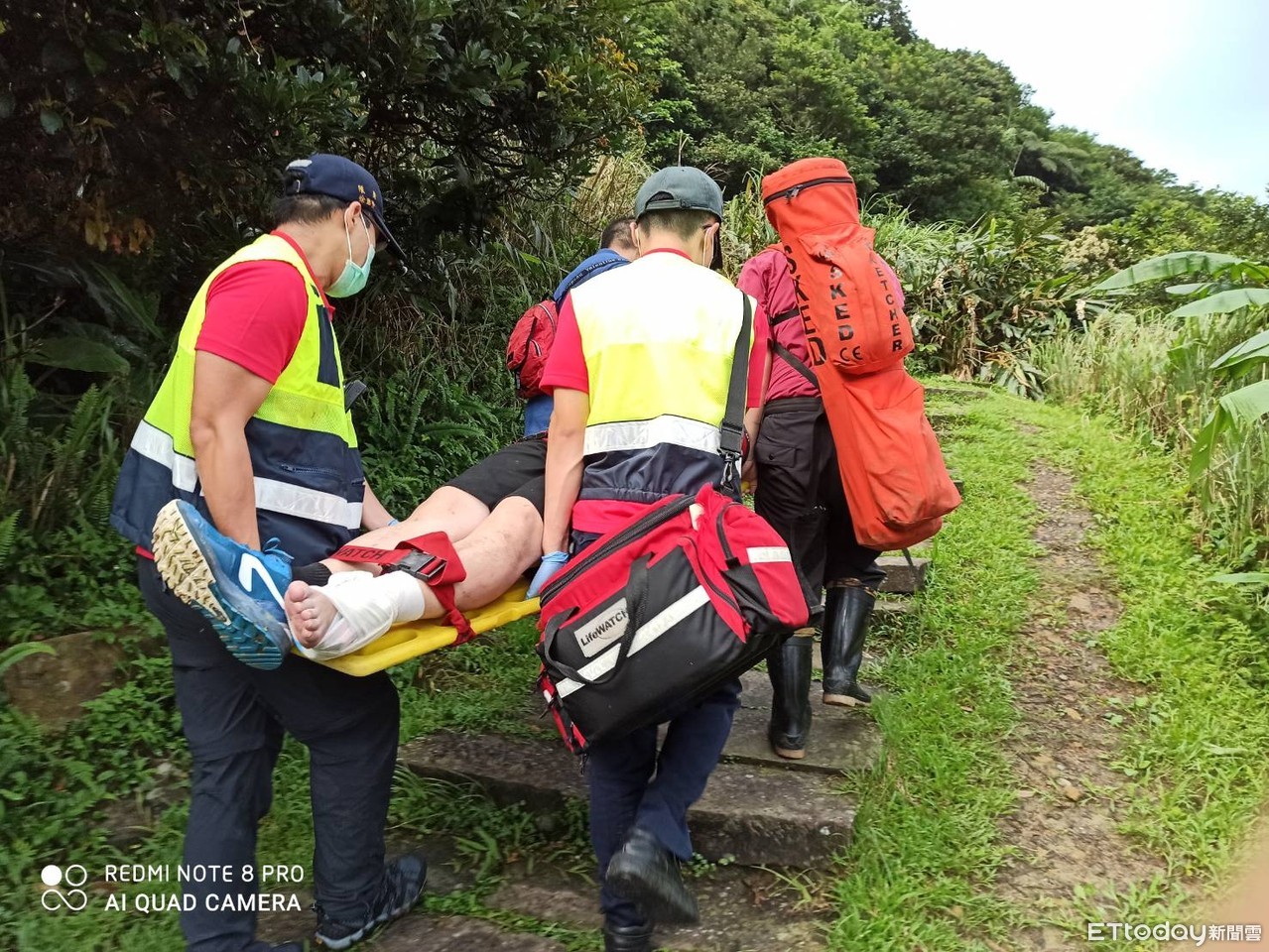 ▲宜蘭警消上山救援摔傷腳踝疑變形骨折的陳姓男子。(圖/記者游芳男翻攝,下同)
