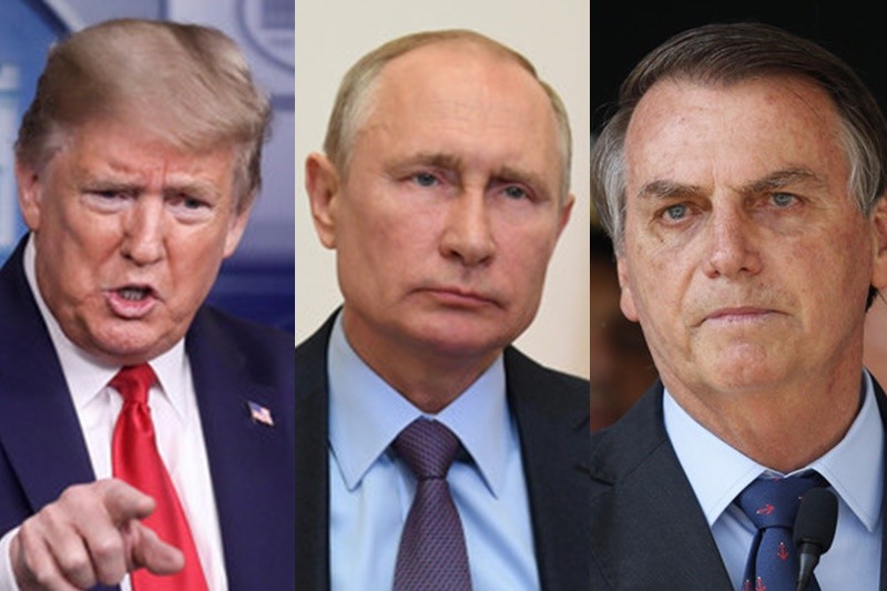 ▲美國總統川普(左)、俄羅斯總統普丁(中)、巴西總統波索納洛(右)。(圖/達志影像/美聯社)