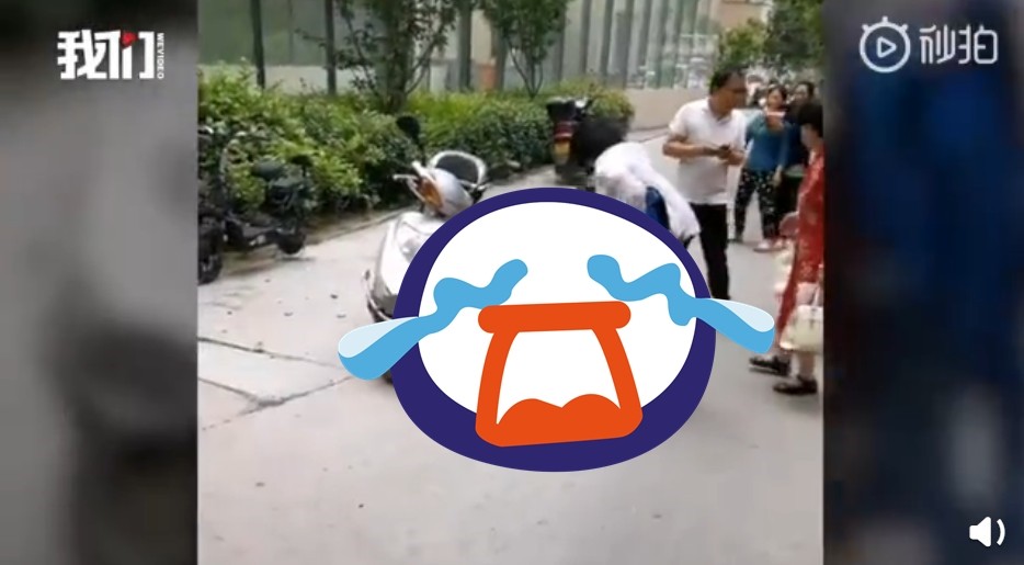 ▲路過男童慘被磁磚砸中頭部。(圖/翻攝自秒拍/新京報)