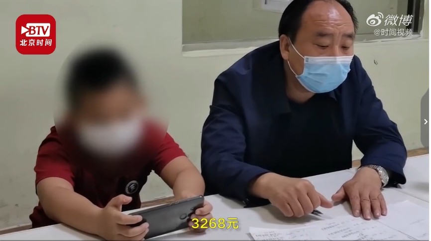 ▲男童因為盜刷爺爺積蓄被帶到警局。(圖/翻攝自微博/北京時間)