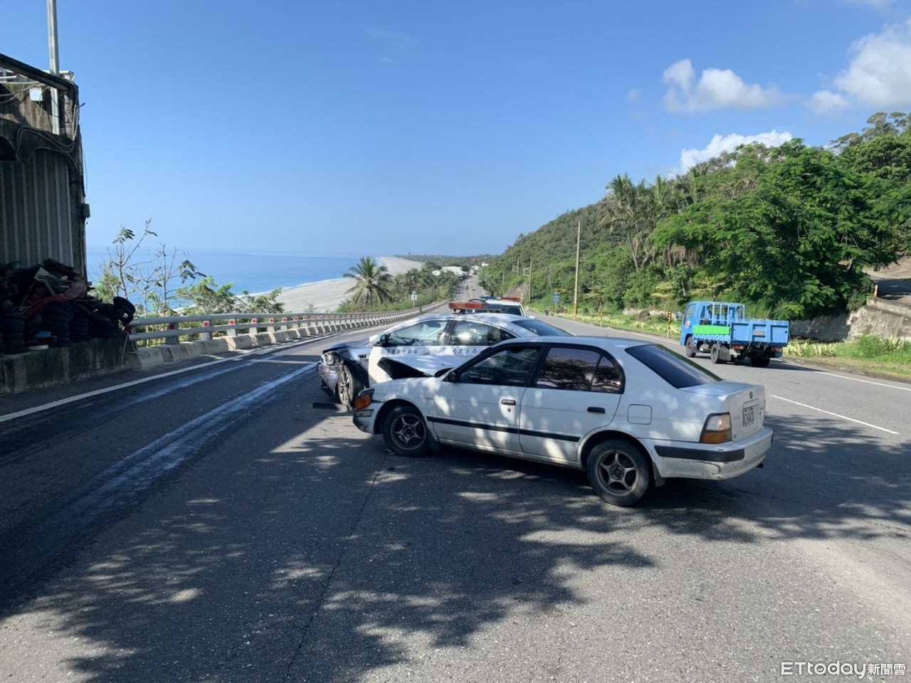 ▲ 台東巡邏警車與民眾自小客擦撞,車頭皆損無人受傷。(圖/台東縣警局提供)