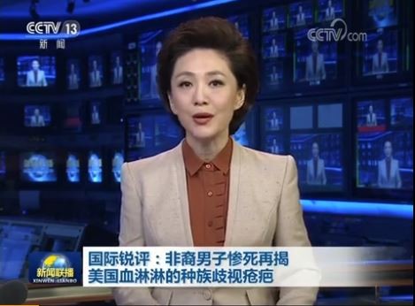 央視新聞聯播也加入抨擊美國隊列,於5月31日發表題為「非裔男子慘死再揭美國血淋淋的種族歧視瘡疤」的社評,稱「佛洛伊德之死」所引爆的大騷亂是美國政客自釀的一杯苦酒,並反問美國政客「是不是早該向美國民眾謝罪?」
