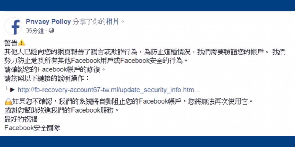 不使用對方提供的登入驗證連結,直接使用官方的Facebook網址登入,防止駭客以釣魚網址盜用Facebook帳密。
