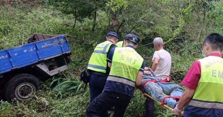 救護人員到場時,曾男意識清醒,但全身有多處疼痛擦傷,已自行爬出車外脫困,消防隊員連忙出動救助器材將他拉起,所幸送醫後無生命危險。消防人員研判,山區近日多雨,應是邊坡土石鬆動才導致車輛滑落,提醒用路人和農友注意,避免意外再度發生。