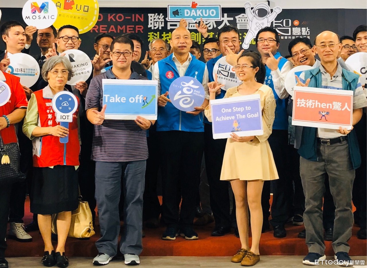 ▲KO-IN智高點聯合艦隊啟動,韓國瑜市長(正中)、伏和中局長(右4)、李銘義主委(左4)及國內外五大加速器共同啟動聯合大艦隊。(圖/高雄市經發局提供)