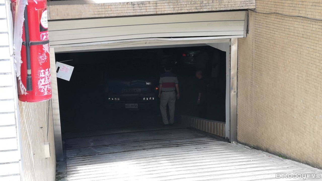 ▲貨車往後滑撞進地下室,鐵捲門慘遭殃 。(圖/記者黃彥傑攝)