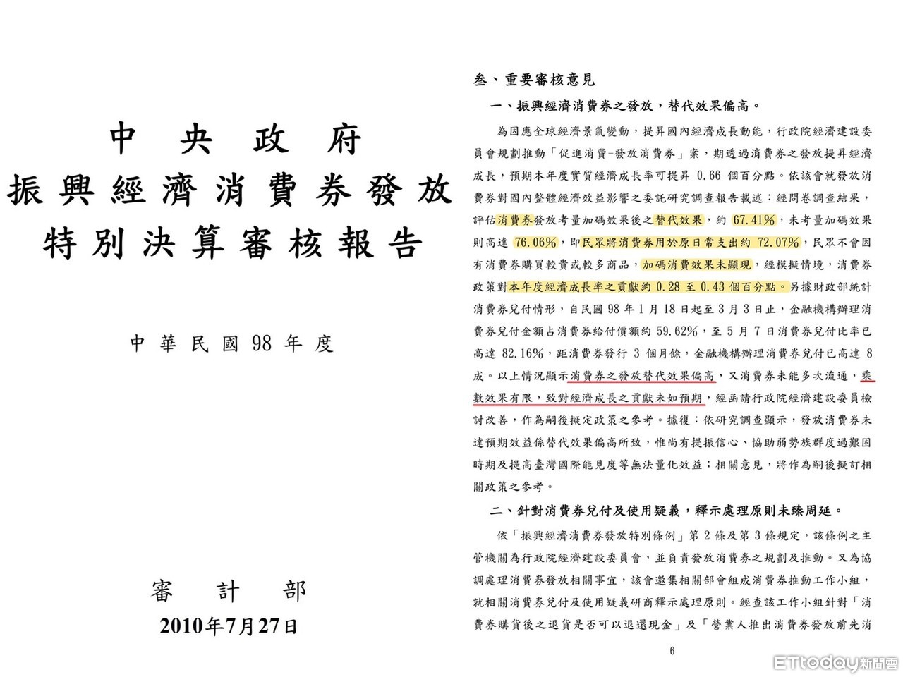 ▲「馬政府時期」監察院審計部「中央政府振興經濟消費券發放特別決算審核報告」。(圖/讀者提供)