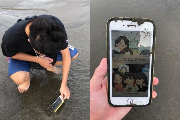 網友昨在臉書社團「新竹人大小事」發文直呼,「在新月沙灣玩沙,挖出一支手機!」他表示,手機原本是完全被覆蓋的狀態,後來被水沖到,露出一個角角才會看見。