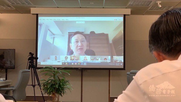 ▲童振源自泰國返台,居家檢疫期間透過視訊向同仁開會說明。(圖/僑委會提供,下同)
