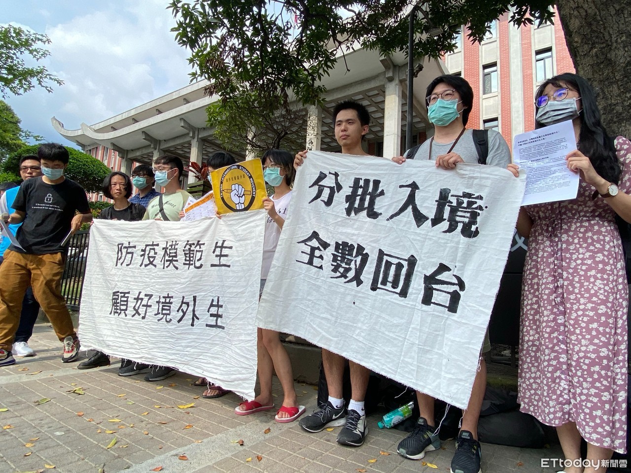 ▲境外生權益小組赴教育部陳抗,高喊「防疫模範生,顧好境外生」、「分批入境,全數回台」。(圖/記者崔至雲攝)
