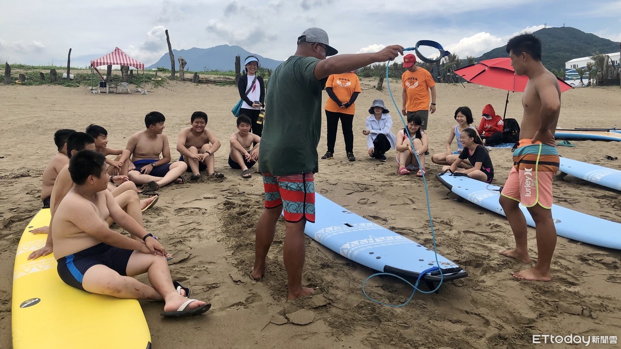 ▲ 新北大鵬國小畢業生挑戰陸海空,金山中角灣衝浪另類體驗。(圖/新北市大鵬國小提供,下同)