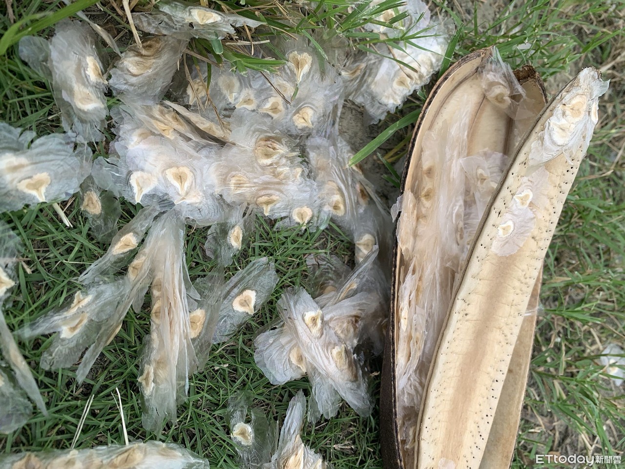 ▲台南山上花園水道博物館火焰木結子,園區內出現不少宛如長了翅膀的愛心,隨風飄散,銀白色的小點,散落在綠茵上好浪漫。(圖/記者林悅翻攝,下同)
