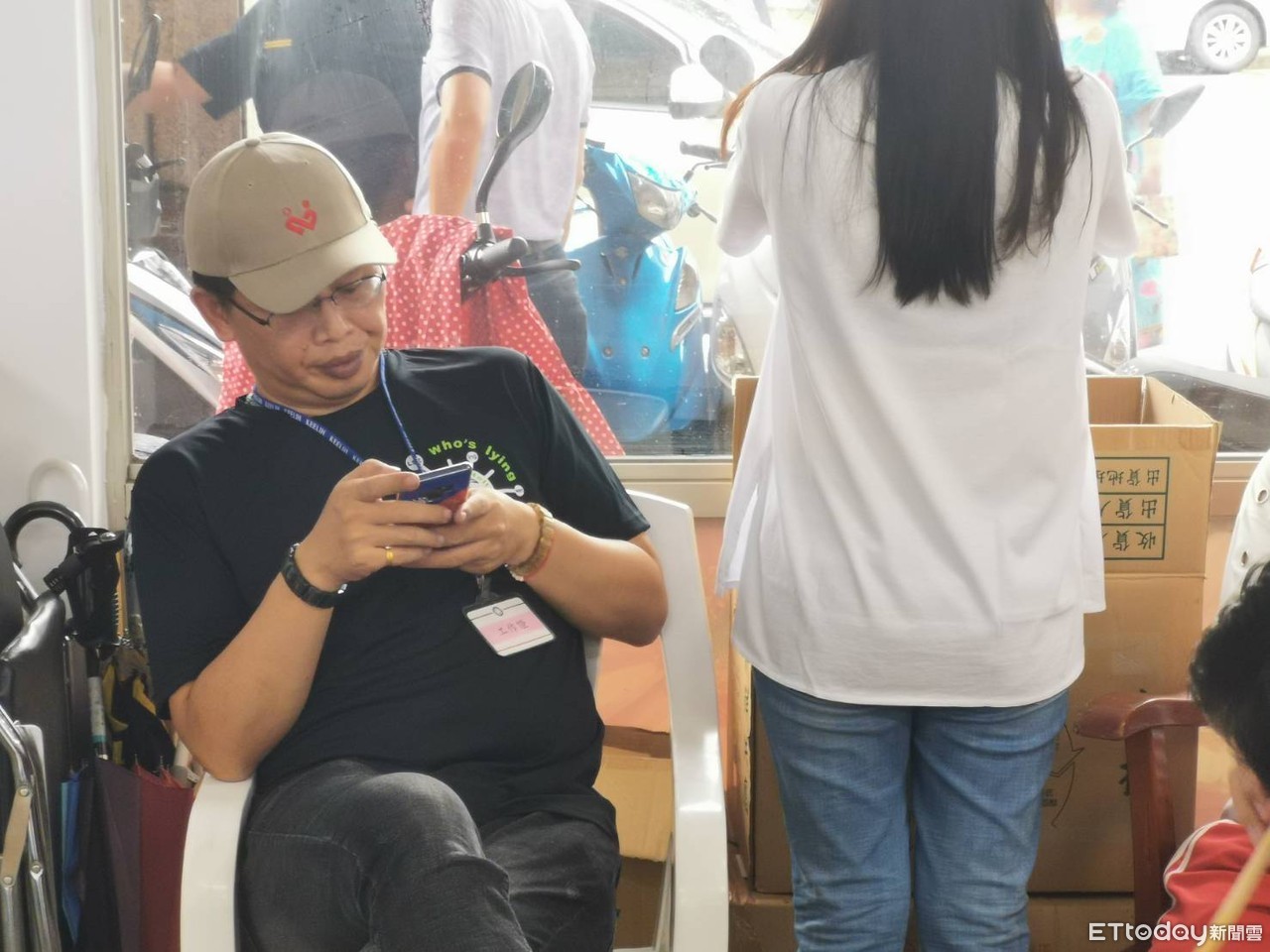 ▲支持者情緒低落滑手機,以下同。(圖/記者王亞志攝)