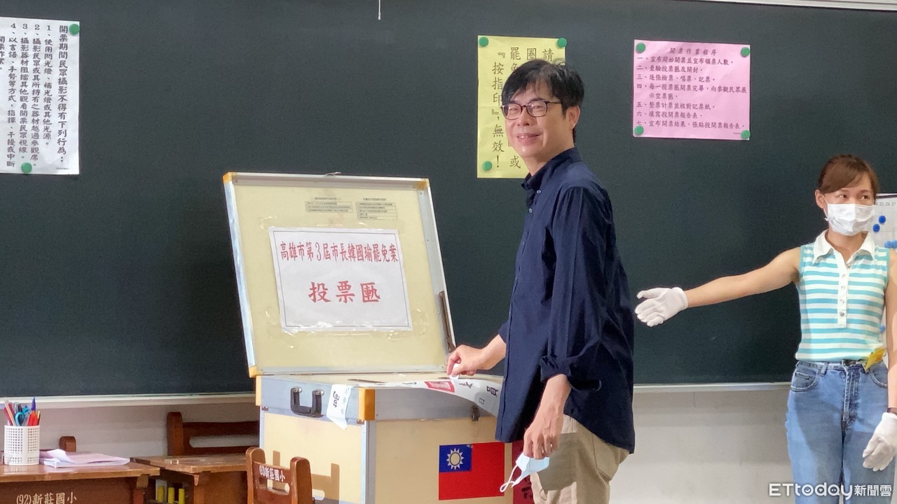▲陳其邁回家投票。(圖/記者陳以昇攝)