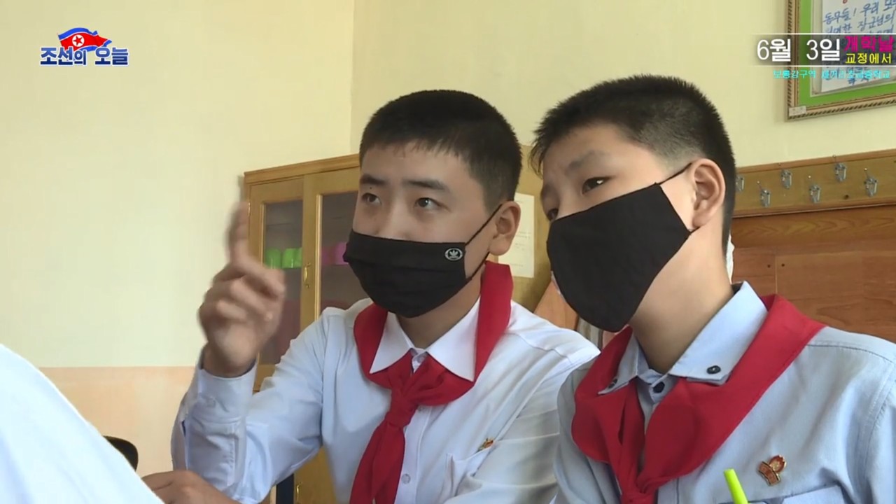 該校開學典禮以視訊方式進行,在辦公室內的校長全春海(전춘해,音譯)透過北韓自行開發的「萬里鏡」視訊軟體,向教室裡的學生喊話。畫面中可見,每名學生都戴上口罩,不論是上學路上或是課堂上都不脫下。一名男學生更戴上印著德國運動品牌愛迪達標誌的黑色口罩,格外受到關注。