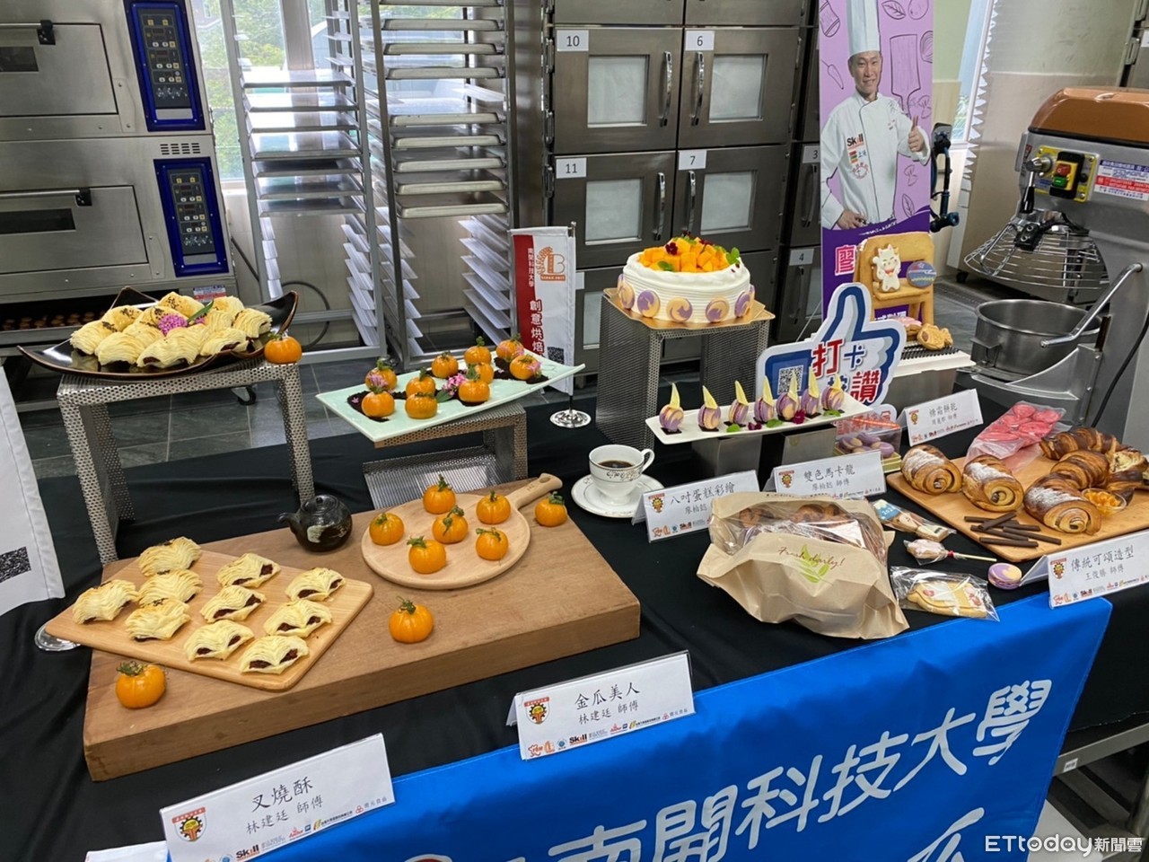 ▲第4屆南開盃聖誕交流賽「暖身」經典烘培會,示範製作彩繪蛋糕、變色馬卡龍。(圖,南開科技大學提供,下同)