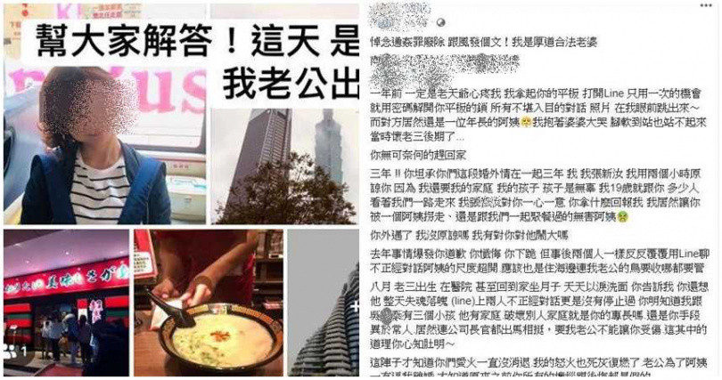 ▲一位被劈腿的人妻,8日怒公布腥夫與「老小三」的照片。(圖/翻攝自爆料公社)