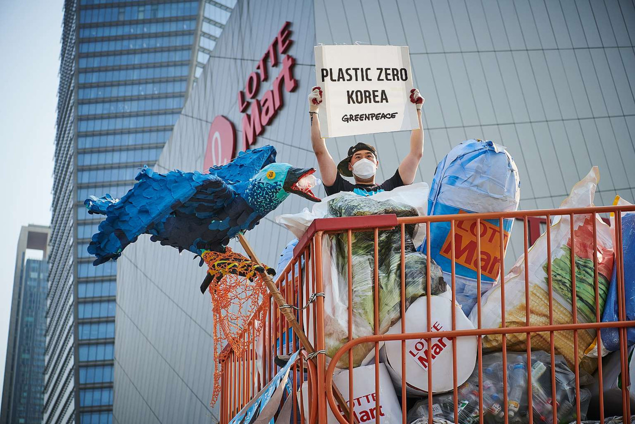 ▲綠色和平指出,韓國樂天超市承諾2025年淘汰50%塑膠包裝。(圖/綠色和平提供)