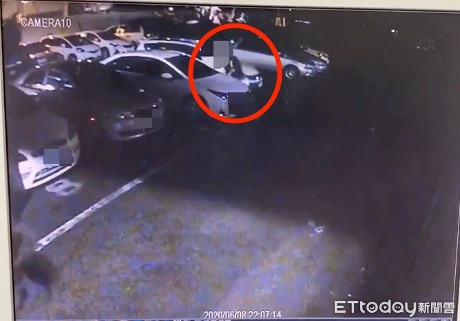 警消獲報到場拉水線灌救,20分鐘才將火撲滅,車主向警方表示,晚間才自宜蘭返家,才停不到半小時就起火,懷疑車內電池短路自燃造成;警方調閱停車場監視器查看,赫然發現一名男子鬼祟進入停車場,蹲在事發的白車旁邊,沒多久噴出火花燃燒。
