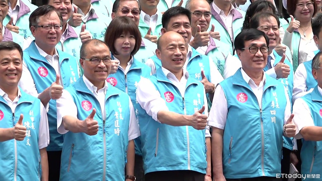 ▲韓國瑜9日上午率市府一級主管拍畢業照。(圖/記者洪正達攝)