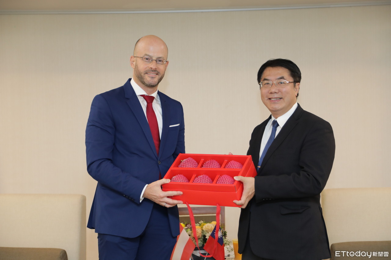 ▲奧地利商務代表辦事處傅詩元代表偕商務組長陳立民,拜會台南市長黃偉哲,由經濟發展局局長陳凱凌及新聞及國際關係處處長蘇恩恩陪同與會。(圖/記者林悅翻攝,下同)