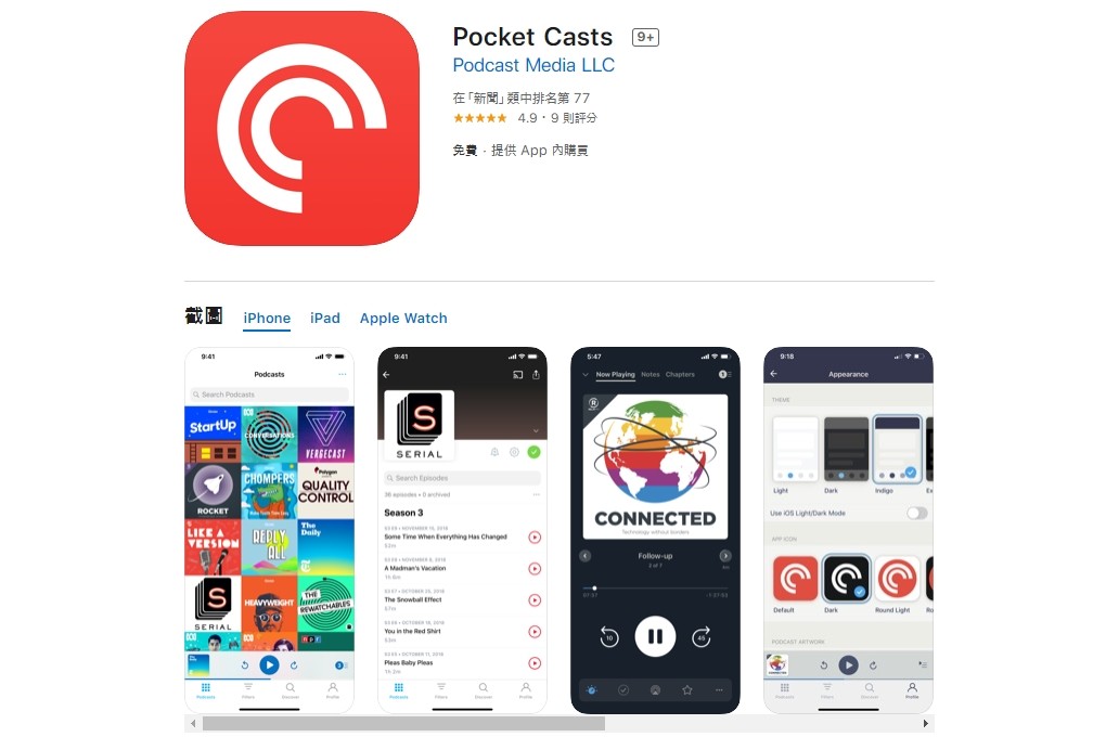 ▲蘋果自中國App Store下架Podcast App「Pocket Casts」。(圖/截自App Store)