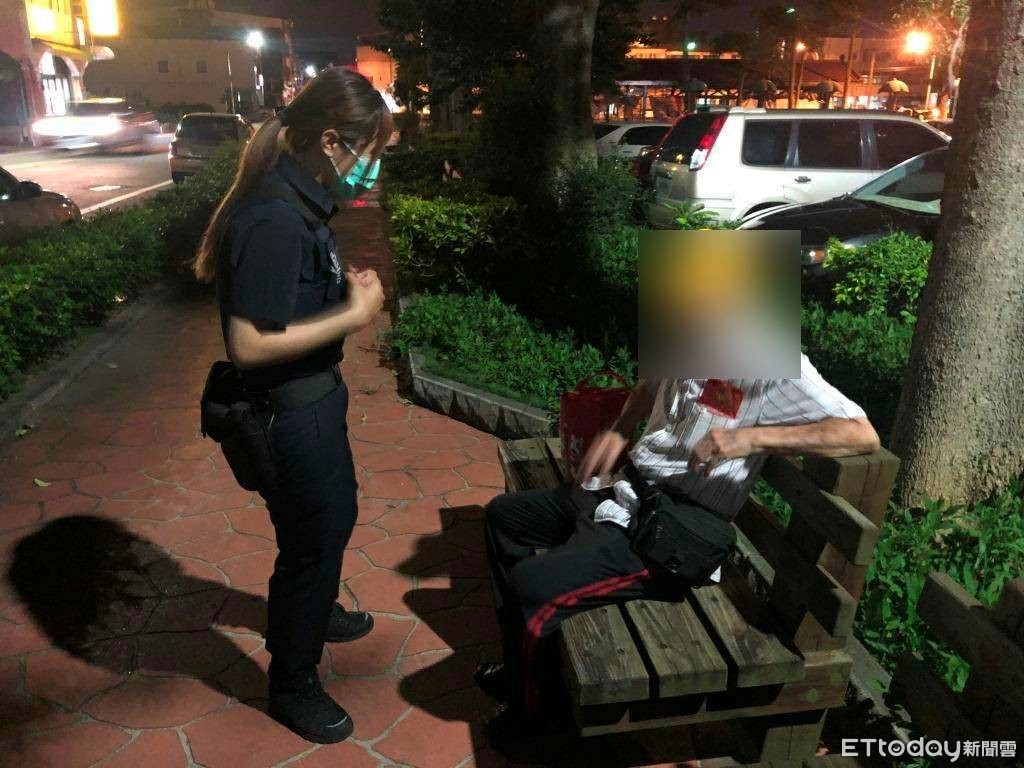 苗栗分局北苗派出所警員蕭仲閔、許玉臻接獲通報後,立刻前往該地點查看,果真發現1名老人坐在路旁休息。並立即趨前關心,因該名老翁年事已高,無法明確陳述年籍資料及家屬聯絡方式,加上張姓老翁行動不便,基於安全考量,遂先將老翁回派出所,並且提供簡單飲水及食物供其食用。