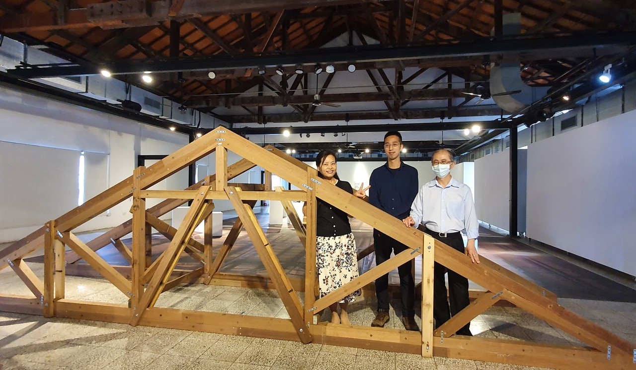 「鐵道建築結構展」即日起至7月19日止於新竹市鐵道藝術村展出,從建築技術角度解構鐵道藝術村建築本體,以深入簡出方式策畫出讓民眾貼近生硬建築技術的理解方法,將日治時期特殊的木桁架工法以等比例的模型,和地板鏡面材質反映出來,揭露的日治時期鐵路倉庫之美,向觀眾一次完整呈現。