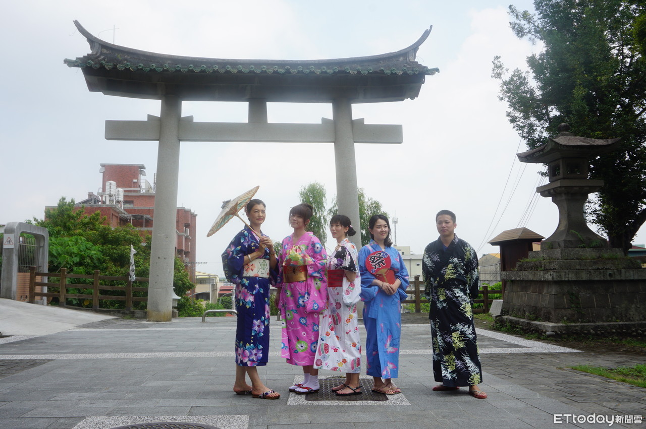 ▲「林內神社和服浴衣節」活動,結合在地耆老與公益團體,利用13、14日周休二日上午,指導參與民眾了解神社文化與和服美學,與神社鳥居拍照。(圖/記者蔡佩旻翻攝)