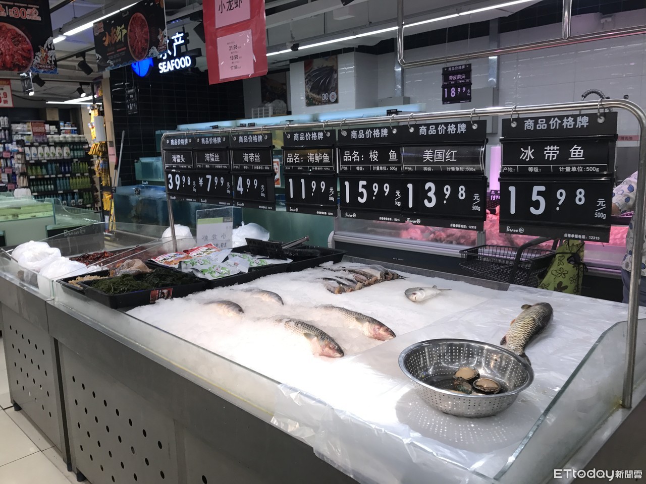 ▲北京的超市快速將鮭魚商品下架。(圖/記者任以芳攝)