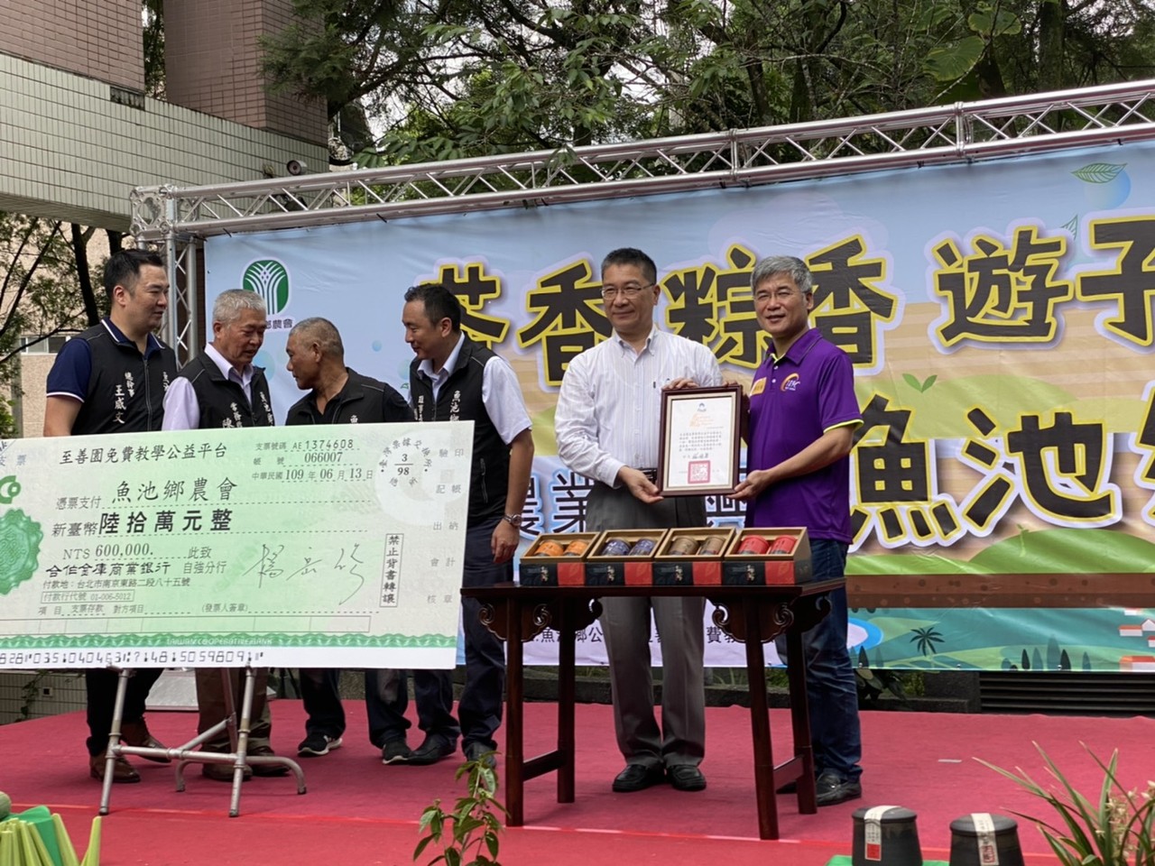 南投縣魚池鄉農會號召茶農捐贈精心培植的13萬茶包給內政部,內政部長徐國勇13日特別到南投致贈感謝狀,感謝茶農在疫情艱難時刻相挺第一線,廣邀民眾到魚池鄉旅遊、購買聞名世界的日月潭紅茶,幫茶農紓困;至善園免費教學公益平台發起人楊岳修也率先響應購買60萬元的茶葉,並直接轉贈第一線防疫人員,為防疫及振興盡心力。