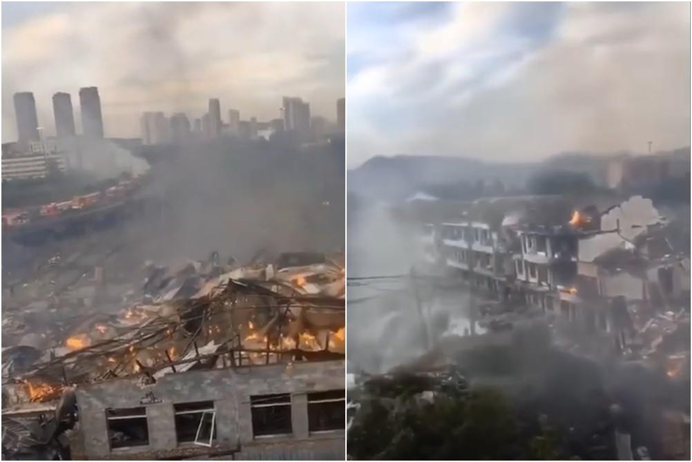 浙江驚傳重大爆炸死亡事故,「溫嶺發布」訊息指出,13日下午4時許,一輛油罐車行經G15沈海高速公路溫嶺市涼山村路段時爆炸,衝出道路,導致周邊房屋、廠房瞬間倒塌,目前已知造成4人死亡50多人受傷。附近目擊者拍下畫面,只見大片黑煙直衝天際,熊熊火舌不斷竄出,附近房屋都被轟爛倒塌,殘骸四散,甚至有一輛汽車遭炸飛4層樓高,猶如人間煉獄。