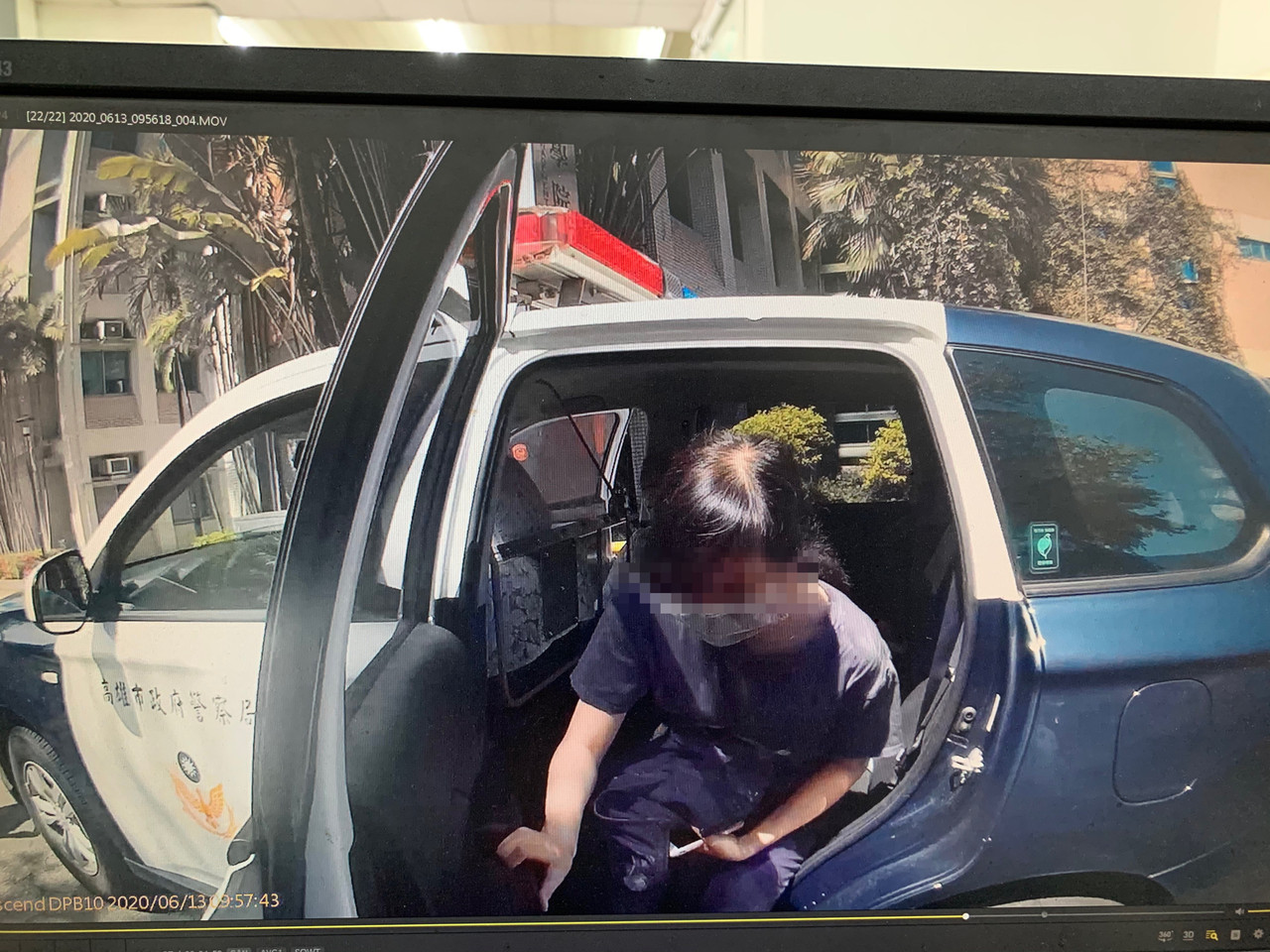 ▲警方開警車載受傷女子赴考場。(圖/記者黃子倩翻攝)