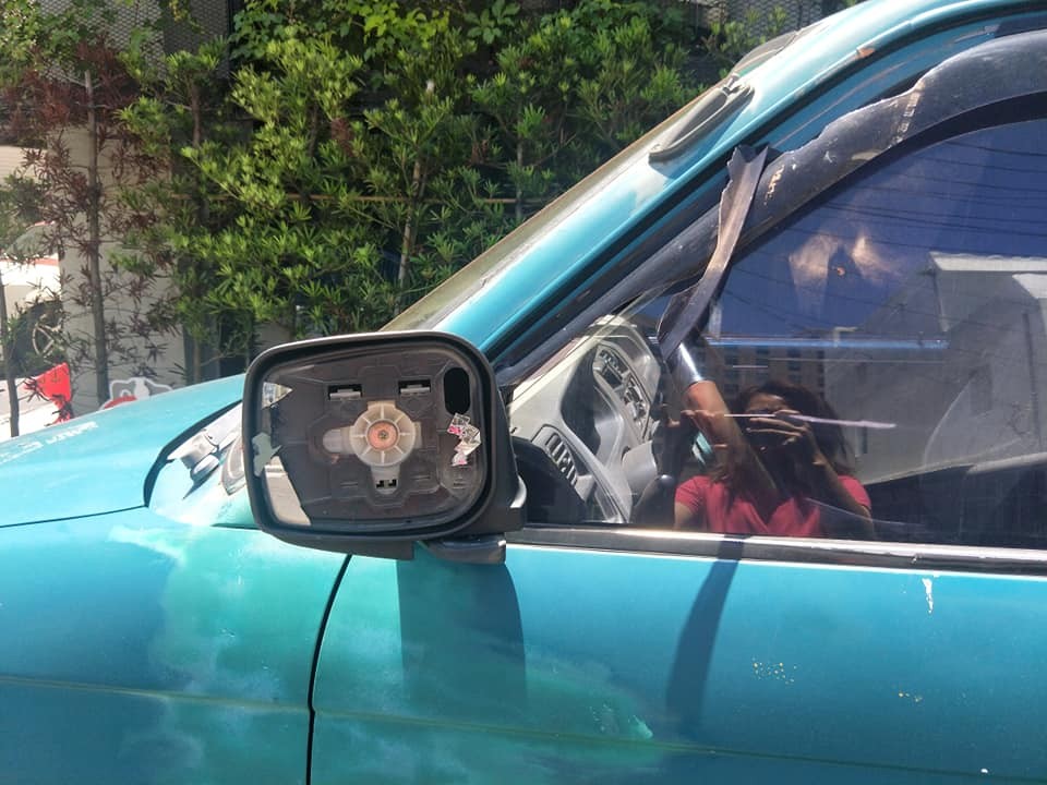 ▲恆春民宿老闆狠砸貨車,造成後照鏡、車窗碎裂。(圖/翻攝方女臉書)
