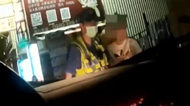 ▲好心背包男(中)通報警方前來協助陳小姐(右)。(圖/東森新聞)