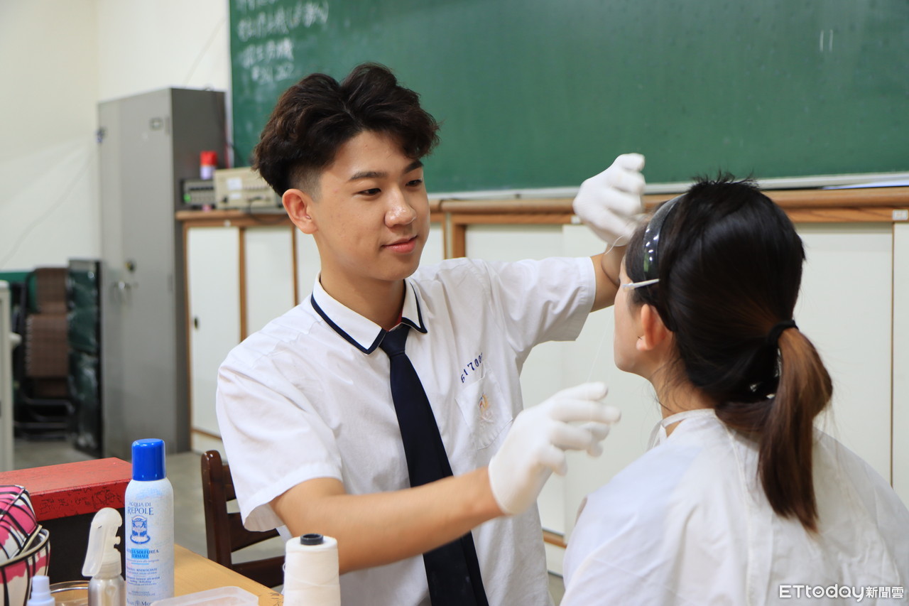 ▲長榮女中時尚造型科學生郭濬樺,靠著不俗的外表與精湛的技藝,讓男女老少都淪「線」。(圖/記者林悅攝)