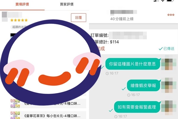 賣家上爆廢公社po文直呼,「在蝦皮賣東西,居然遇到買家在評價裡面開車,交易過程完全沒有爭議,我還給對方評價5顆星,沒想到他回我色情圖片,超傻眼,我只是賣咖啡跟茶包的賣家,不是賣情趣用品的阿!」