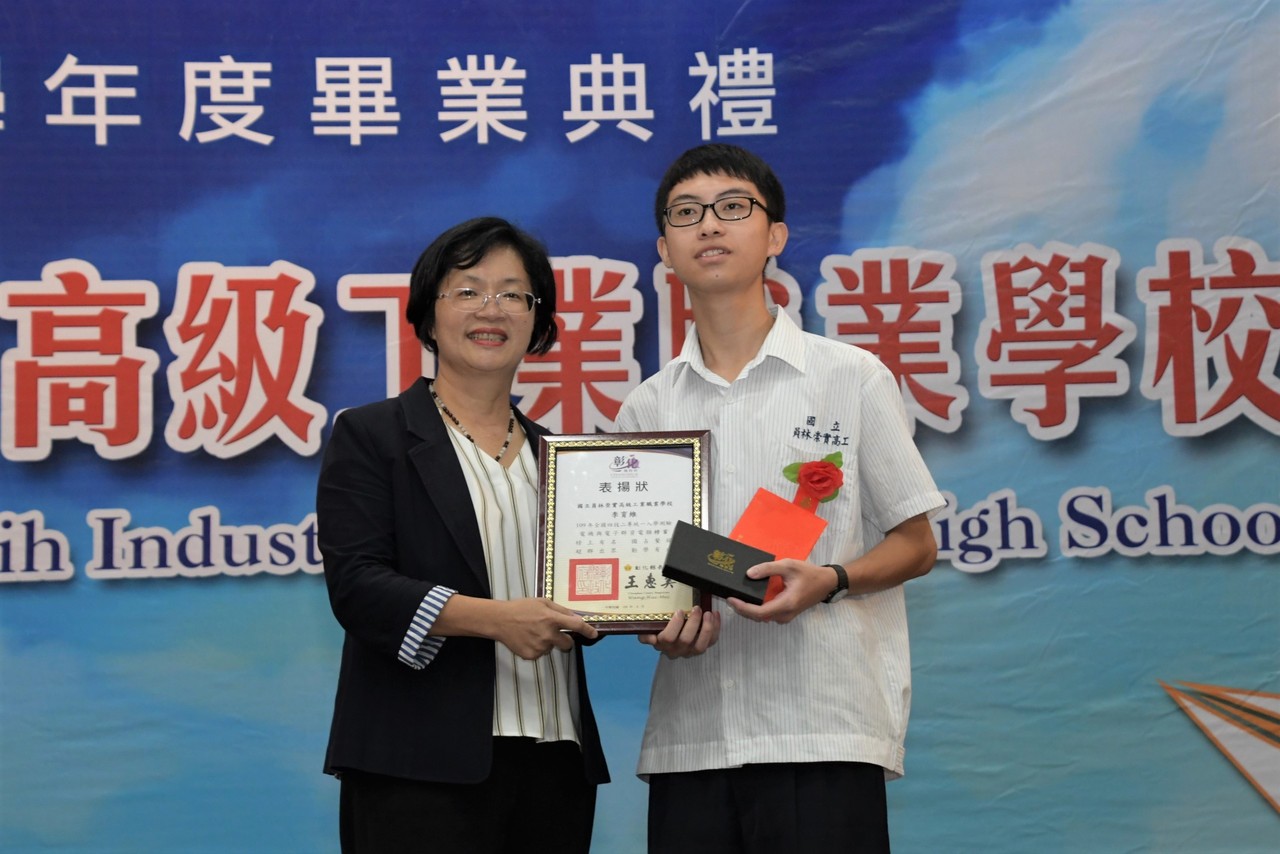 彰化縣長王惠美16日上午參加員林崇實高工畢業典禮,典禮由員林崇實高工校長吳貽誠主持,會中由王縣長頒發縣長獎予14位學業優異學生,並表揚李育維,王惠美讚許李育維為學校立下里程碑,也為學弟妹建立良好的榜樣,同時勉勵所有畢業生在未來無論是繼續就學或者就業,都能記得過去3年老師的指導與教誨,突破自我、再創佳績。