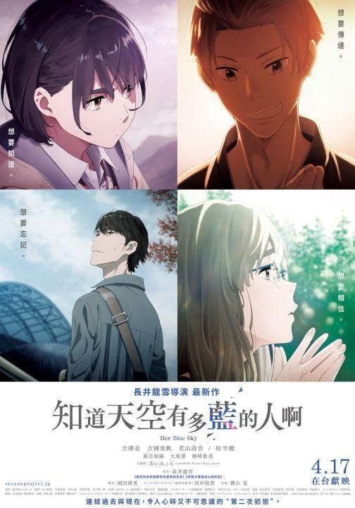 《知道天空有多藍的人啊》為過去曾製作過《我們仍未知道那天所看見的花名。》(略稱:未聞花名)、《好想大聲說出心底的話》等作品的日本知名動畫監督長井龍雪所推出的最新原創動畫電影。本次將再次以秩父作為舞台,描述一段連結過去與未來,四名角色之間不可思議的四角關係。