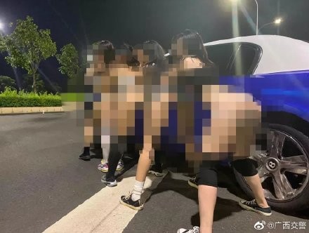 廣西南寧一群「性感女團」的影片15日在網路上流傳,她們晚間霸佔馬路,在高檔轎車上熱舞,並且還大跳「電臀舞」,引起討論。警方通報指出,莫某為了宣傳舞蹈教室,才號召女學員們一起表演。