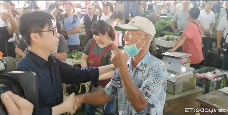 另外,還有一名陳姓攤商請陳其邁喝茶,緊握住陳其邁的手陳情,表示自己從1978年媽祖婆時代就在賣菜了,希望每一個攤位都要有一個停車位,「欠我的要給我」。