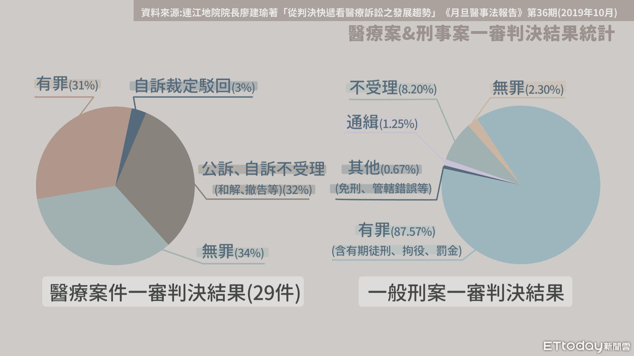 ▲醫療糾紛刑事案件的有罪率,遠低於其他刑案。(圖/連江地院院長廖建瑜提供、《ETtoday新聞雲》製作)