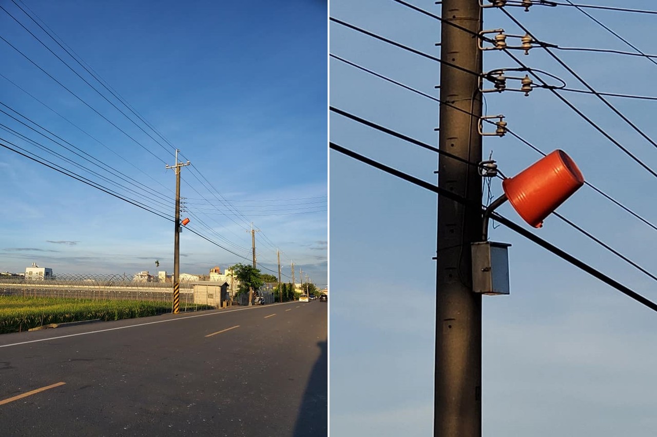 馬路旁高大的路燈被蓋上紅水桶,背後原因竟與農作物有關。一名網友日前經過田野旁馬路時,意外發現其中一支電線桿上有水桶,似乎是被人為掛在路燈上,此舉讓他百思不得其解,於是拍下來PO到網路上,「真是考倒我了哈哈哈」。