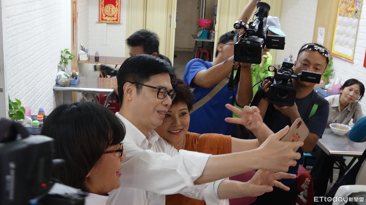 ▲陳其邁參加補選,前往岡山市場拜票 。(圖/記者吳奕靖攝)