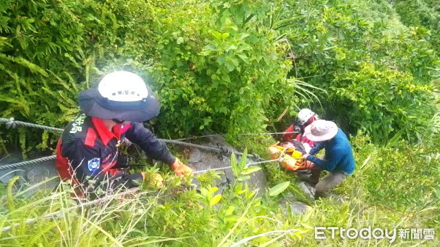 宜蘭消防局表示,21日13時47分許,住宜蘭市53歲張姓釣客妻子求救說,她與丈夫張男攀爬蘇澳鎮烏岩角山崖下到海邊釣魚,2人在地勢陡峭的返程途中,張男疑熱中暑暈倒,意識不清。