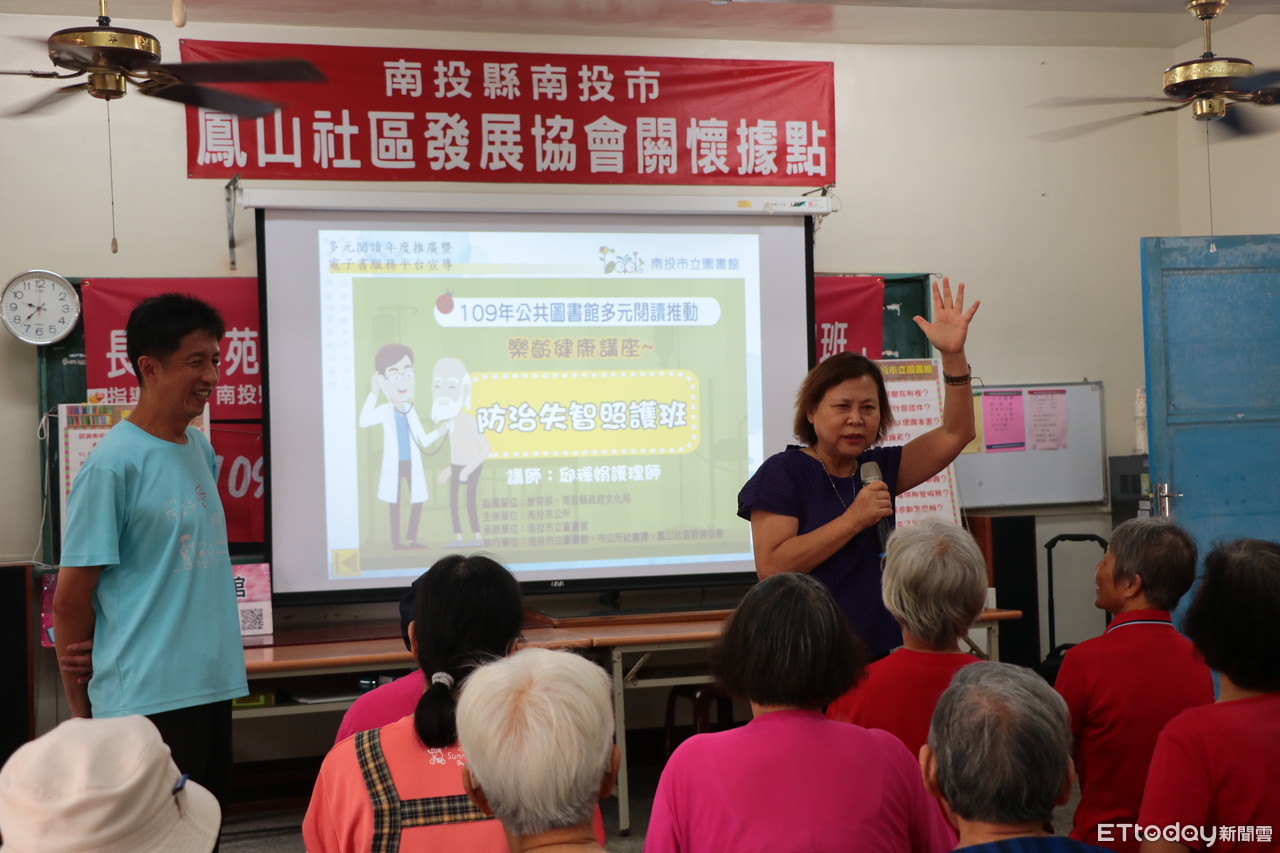 南投市公所市立圖書館22日及23日分別在鳳山活動中心與鳳山社區發展協會、鳳鳴社區活動中心與鳳鳴社區發展協會,舉辦109年公共圖書館多元閱讀推動「樂齡健康講座」,邀請講師講授「防治失智照護班(鳳山班)、健康老化照護班(鳳鳴班)。